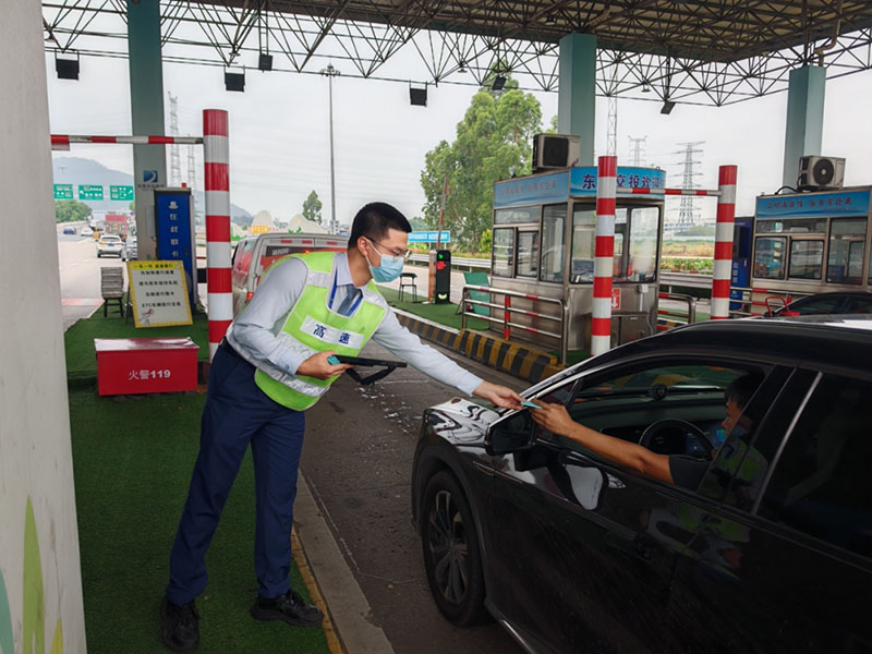 為提升通行效率,在高峰期的入口車道,工作人員手持預(yù)刷卡設(shè)備主動向排隊(duì)中的非ETC車輛司機(jī)發(fā)放通行卡,讓車輛行駛至入口處時(shí)無需在欄桿前??咳】?,為司乘快速通行“爭分奪秒”。對此司機(jī)劉先生深有體會,“高峰期排隊(duì)時(shí)看到有工作人員主動提供發(fā)卡服務(wù),內(nèi)心就沒有那么焦慮了?!?/span>
