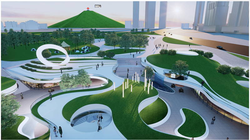 該項(xiàng)目毗鄰道滘站,以水鄉(xiāng)城市為設(shè)計(jì)理念,結(jié)合軌道場(chǎng)站與周邊濱水環(huán)境,建立城市與綠地?zé)o縫銜接、綜合交通充分融合、生活配套完善的立體空間,打造交通、綠化、商業(yè)、居住及教育一體化的新型城市活力中心。